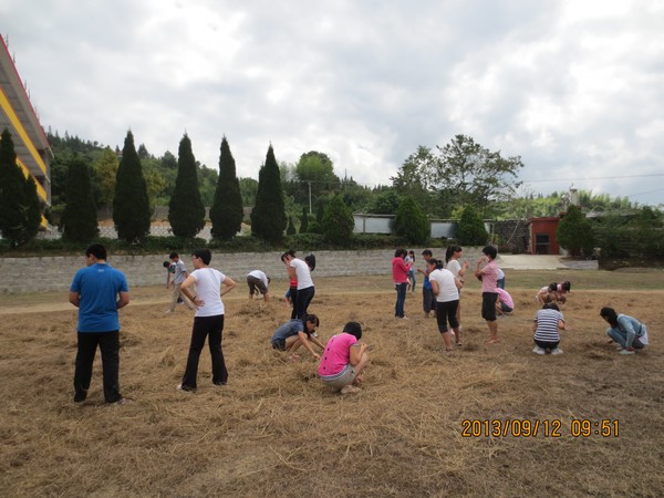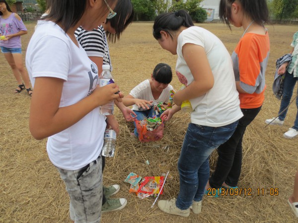 先安排全班每个人在小纸条上写几个英语单词或汉语,然后把纸条团成团,交给班级的“工作人员”,由他们先行选定操场某个区域,把这些纸团制成的“地雷”埋藏在枯草丛中。铃声响后,同学们就可以开始在草丛中寻找“地雷”。找到的同学必须根据纸条上面的内容英汉互译,回答正确者可获取一定数量的奖品,如糖果等等。