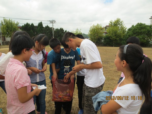 为了给初三的学生们减压,缓解紧张的学习气氛,也为了进一步提高学生们学习英语的兴趣和热情,特别是为了帮助原来英语基础较差的学生,加上同学们的强烈要求,我今天又把课堂移到了操场。