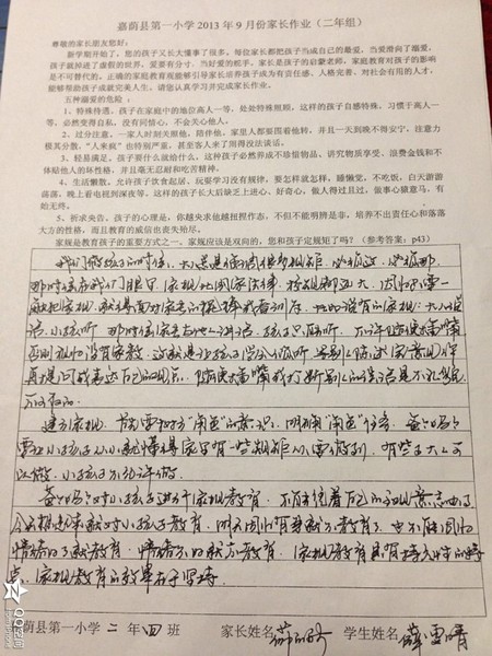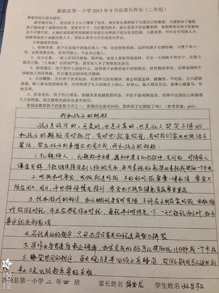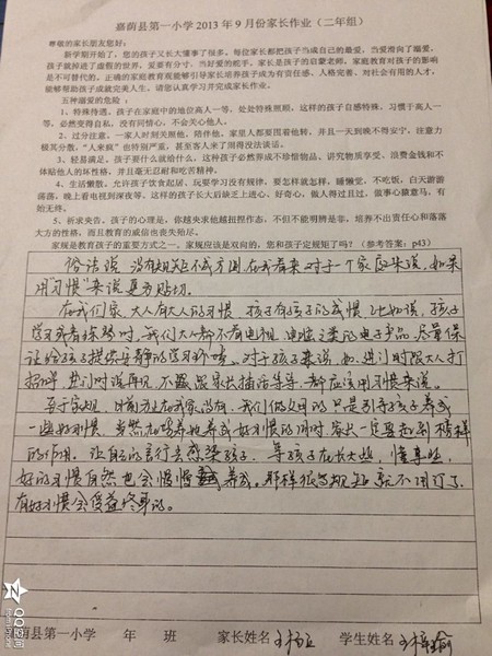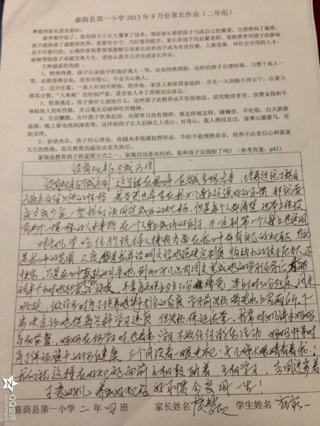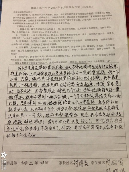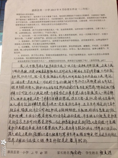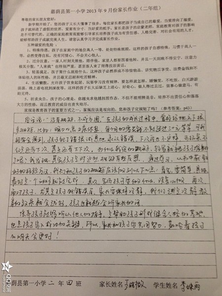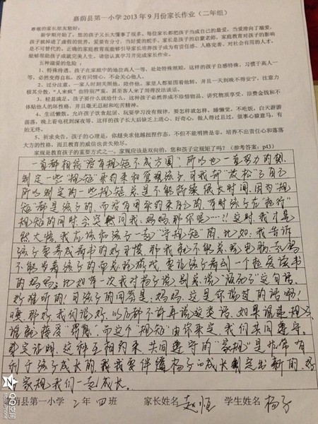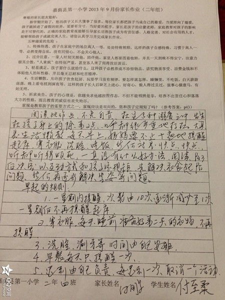 二年四班九月份优秀家长作业