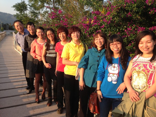 顾老师刚刚结束宁德与福鼎的讲座就马不停蹄赶至古田,古田的家庭教育指导师们得知顾老师到来都迫不及待的要与其交流,家庭教育的古田会议以一种非会议桌式的方式召开,古田十几位指导师与顾老师相约风景秀丽的翠屏湖畔(百果园)召开了此次重大会议,我们不放过任何与顾老师交流的机会,在饭桌上,在路途中,指导师们就自己目前工作开展中遇到的问题与顾老师做了深入交流,本想中午的时间继续交流,但顾老师晚上还有讲座,而且已经在宁德与福鼎奔波了好几天,我们都很心疼,故而就只能安排顾老师去休息,午休结束,我们又家庭教育的工作开展问题展开讨论,顾老师都耐心的一一解答并给予指导,行走在百果园美丽的长廊,吹着湖风,我们聊着,讨论着,更不放过这眼前的美景,与顾老师拍照,留下永远的纪念,真可谓工作娱乐两不误,如此美景,又是聊着自己热爱的工作,感叹时间也过的太快了,转眼就到了傍晚,顾老师要为晚上的讲座准备了,我们依依不舍的离开了百果园,但家庭教育的古田会议还在延续中。。。。。。。