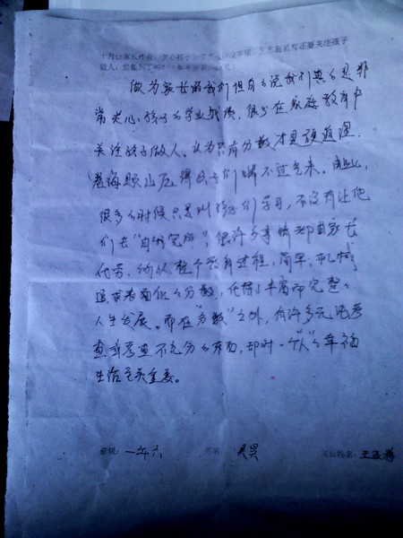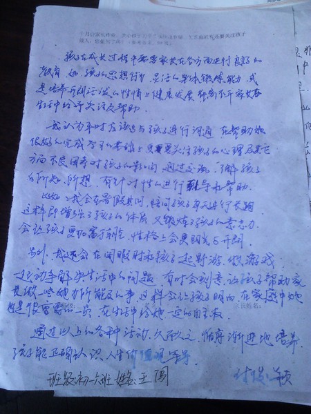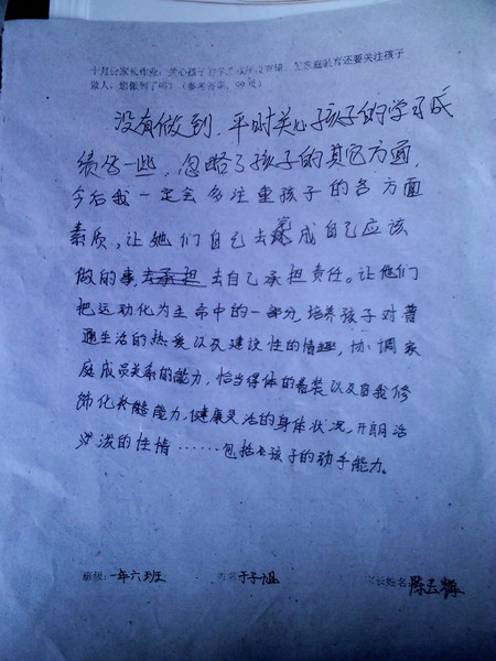 十月份家长作业(做人比成绩更重要)