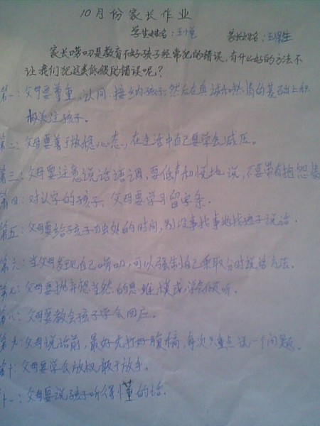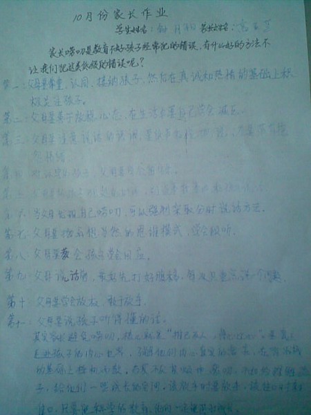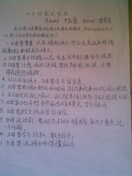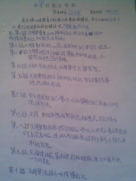 2013年四年级十月份优秀家长作业