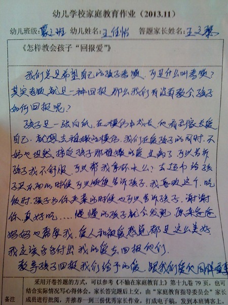 十一月份优秀家长作业名单