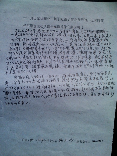 十一月份家长作业