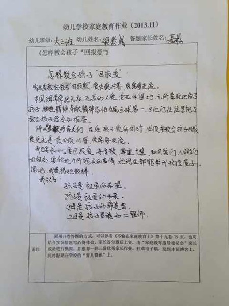 优秀家长作业