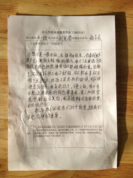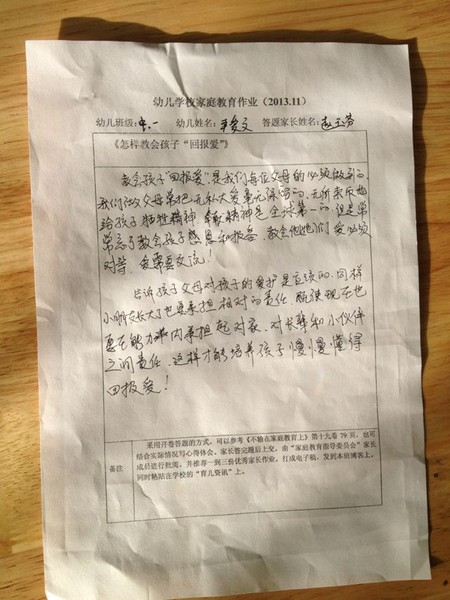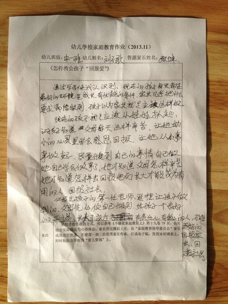 家长优秀作业十一月份