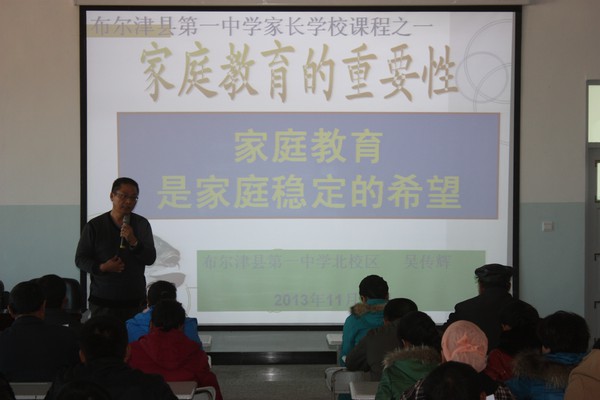 家长学校是指导家庭教育的重要阵地。布尔津县教育系统在中华家庭教育网首席专家顾晓鸣老师的引领、指导下,把家庭教育工作列为学校教育管理的一项重要内容,本着“一切为了孩子,为了孩子的一切,为了一切的孩子”的教育理念,以提高家长的家庭教育水平,帮助家长树立正确的育人观、人才观和质量观,掌握科学的家庭教育方法,从而以创造良好的,科学的现代家庭教育环境为目标,切实开展家长学校。各学校在顾晓明老师和教育局领导的关心和指导下,在学校领导的高度重视下,在全体教师、家长的鼎立配合下,家长学校建设不断地走向了规范化、系统化。家长学校建设不仅为指导家庭教育工作提供了有力的保障,而且形成了以学校为主、以家庭为基础、以社会为依托的三结合全方位育人的德育工作新格局。通过不断增强的教育合力,提高了学校整体的教育水平。2013年秋季开学以来,各学校相继开展家长学校工作,家长学校做到“四明确”即时间、内容、形式、目的、要求、落实都明确,有效利用好《不输在家庭教育上》、《家长手册》家长学校教材。执讲者准确、生动、具体、有说服力的讲座吸引着一位位家长。为了进一步的了解孩子、家长、家庭情况,布尔津县教育系统开展了“百名干部下基层,千名教师访万家”活动。每位教师都能积极的进行家访,做好家访记录并书写家访日志,这为有效开展家长学校获得了一手材料,奠定了基础。有效的家校互动使布尔津县教育从封闭走向开放,走近家庭、走近学生,从而实现终极关怀性教育。班级家长学校突破常规,让家长和学生唱主角,搭建起孩子与父母、与老师,面对面平等交流的平台。师生、家长就教育中的共性问题进行探索、个案分析。学生家长中藏龙卧虎,人才济济,蕴藏着极大的教育潜能,学校充分调动他们中的积极因素,让家长走上讲台,体验学校教育,拉近了家长与孩子之间的感情,有效促进家庭教育的推进。