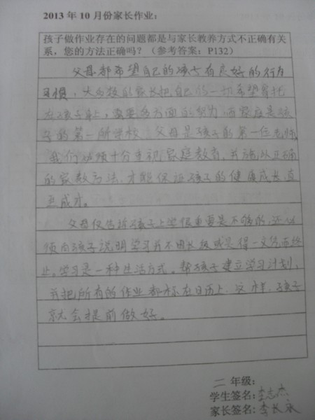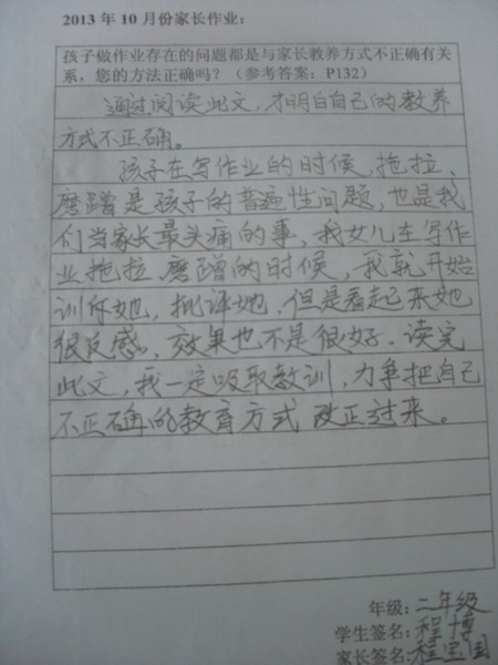 [转]二年级2013年10月优秀家长作业