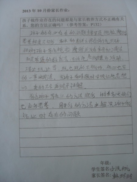 2013年10月优秀家长作业