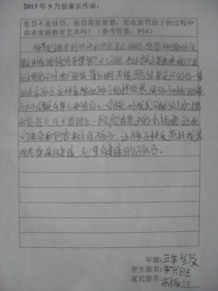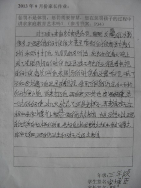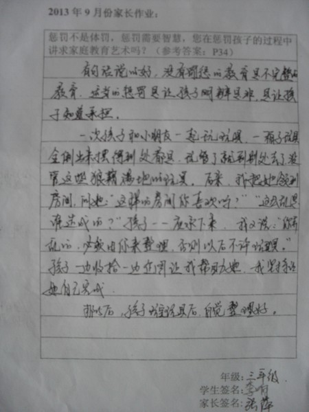 [转三年级]2013年9月优秀家长作业