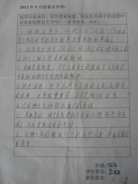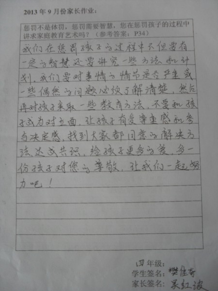 [转]四年级2013年9月优秀家长作业