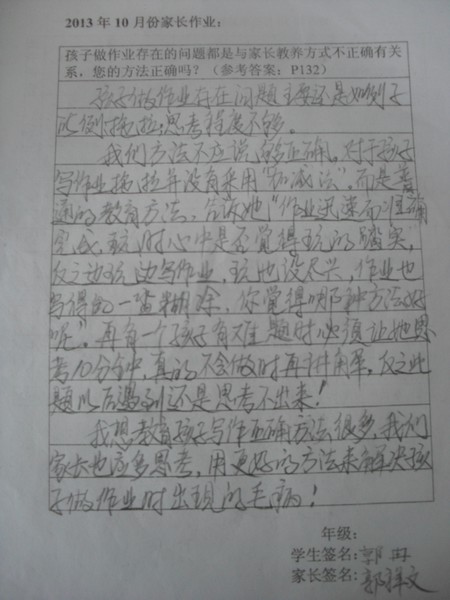 2013年10月优秀家长作业