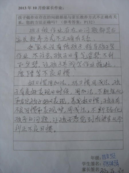 [转]四年级2013年10月优秀家长作业