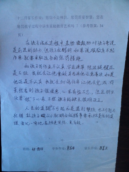 十二月份家长作业