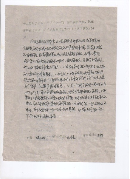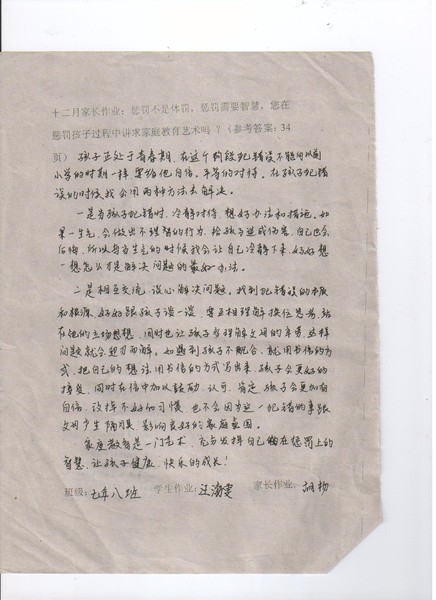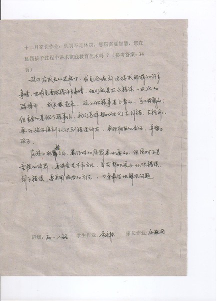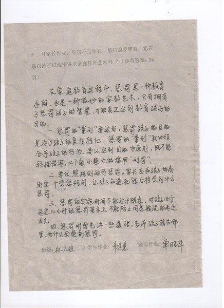 嘉荫二中初一8班优秀家长作业