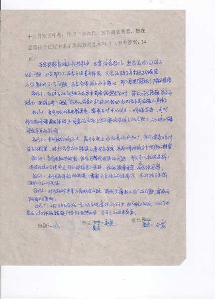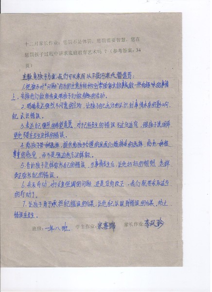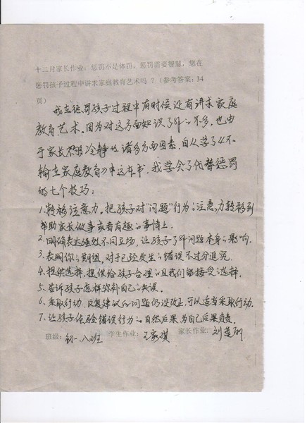 嘉荫二中初一8班12月份优秀家长作业