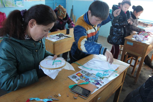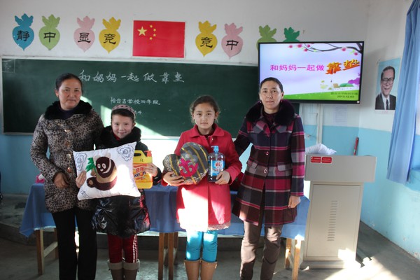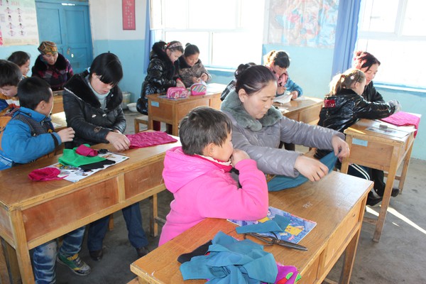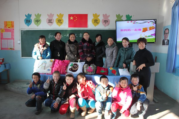 2013年12月4日星期三,恰合吉牧场寄宿制学校召集四年级的家长和学生开展了“和妈妈一起动手做靠垫”的亲子活动。