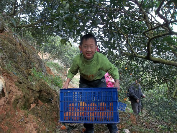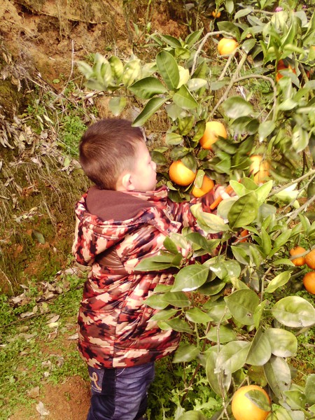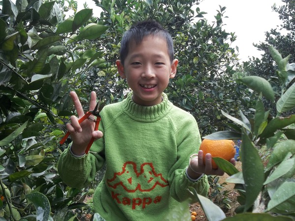 别看我年龄小,个子小,摘脐橙我可厉害喽