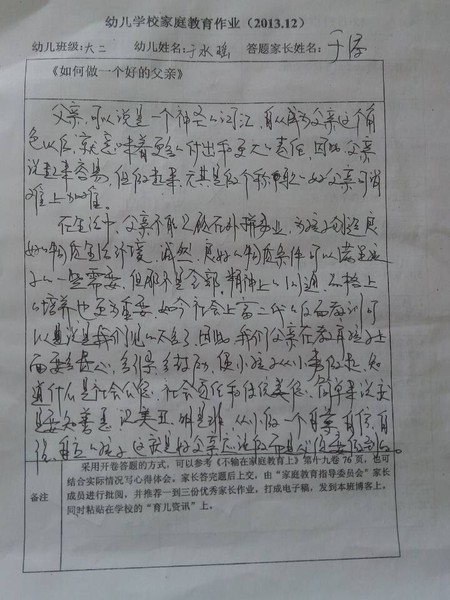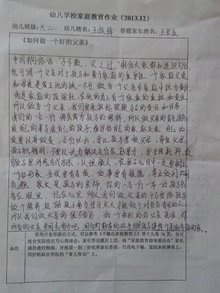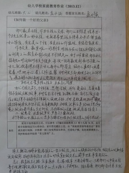 十二月份优秀家长作业