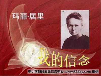 首先我们来看一下作者的基本情况:玛丽·居里,人称居里夫人,法国籍波兰科学家,1867年出生于波兰华沙的一个教师家庭,在巴黎取得学位并从事科学研究。在世界科学史上,玛丽·居里是一个永远不朽的名字,这位伟大的女科学家,以自己的勤奋和天赋,在物理学和化学领域,都做出了杰出的贡献,并因此而成为唯一一位在两个不同学科领域、两次获得诺贝尔奖的著名科学家。主要著作有《论放射性》、《放射性物质的研究》、《现代人的智慧》、《怀念皮埃尔·居里》,她的文章《我的信念》被选入人教版初中二年级上学期的语文书第十二课,鲁教版初中一年级下学期第4课。