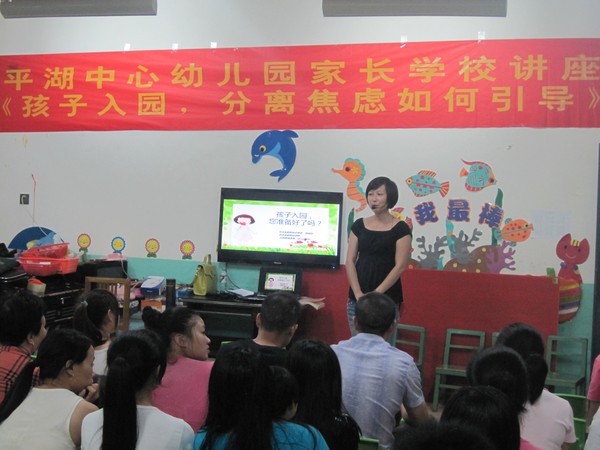 94日晚上,平湖中心小学迎来了两场讲座,分别在小学和幼儿园举办。平湖中心幼儿园一百多名新生幼儿家长认真倾听了中华家庭教育志愿者、中华家庭教育高级讲师、城西第二幼儿园园长郑晓玲所做的专题讲座——《孩子入园,您准备好了吗?》。从孩子入园前与入园后,该做哪些准备,如何帮助孩子克服入园分离焦虑等方面进行了具体指导,赢得了家长阵阵掌声,家长受益匪浅。