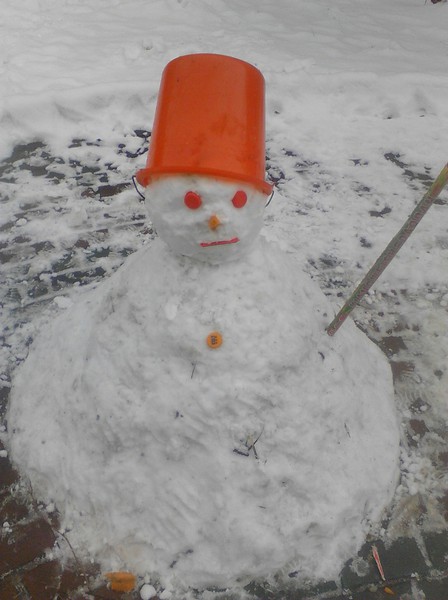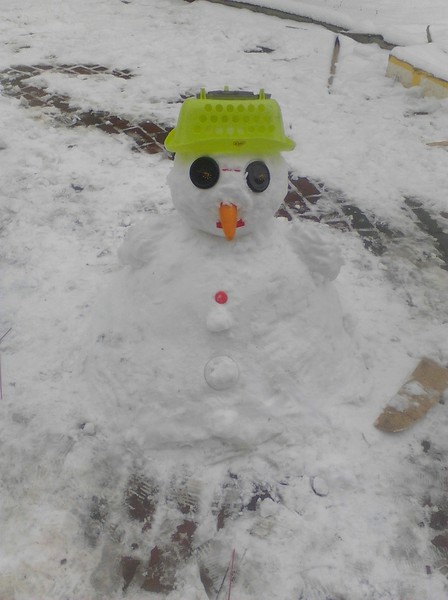 在我和杨杨的通力协作下,我们把道路的雪都铲倒绿化带,而把圆盘中的雪都堆积起来准备做雪人。