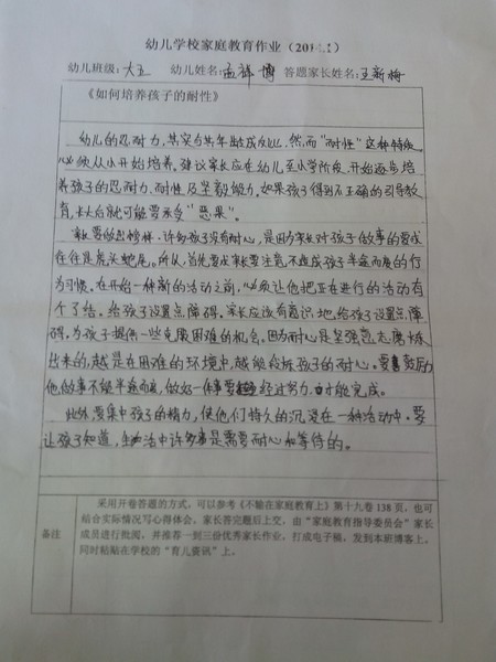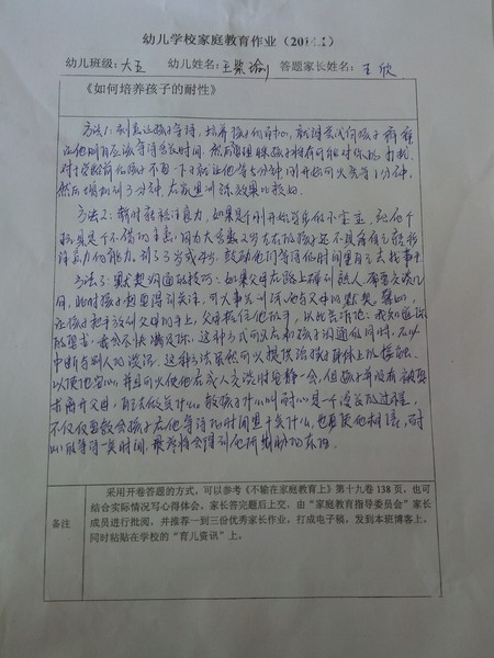 2014年1月份优秀家长作业