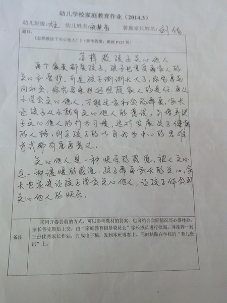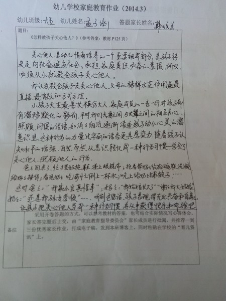 2014年3月份优秀家长作业