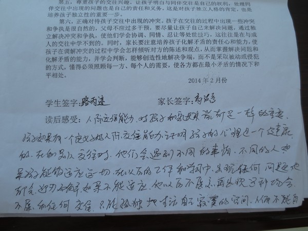 2014、2家长作业完成情况