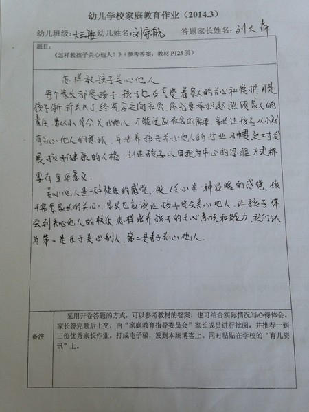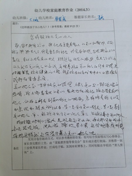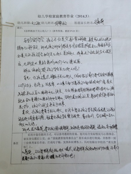 2014年3月份优秀家长作业