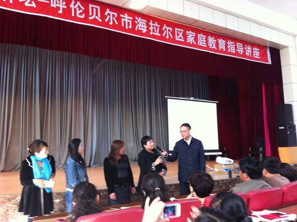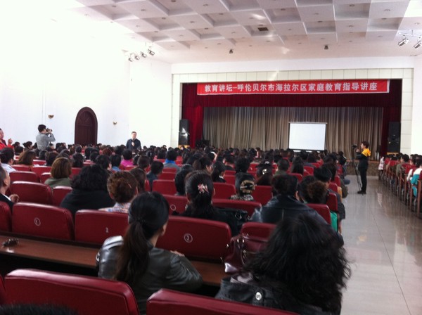 今天顾老师为海拉尔的家长连上了两节课,上午在机关礼堂,下午在海拉尔五中。