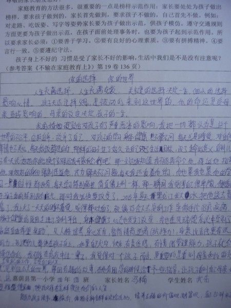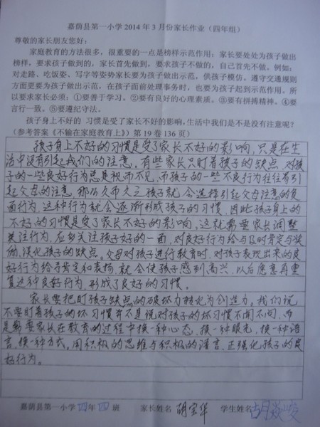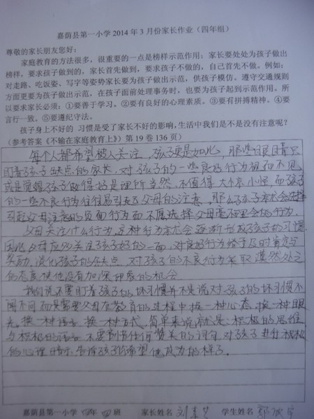三月份优秀家长作业
