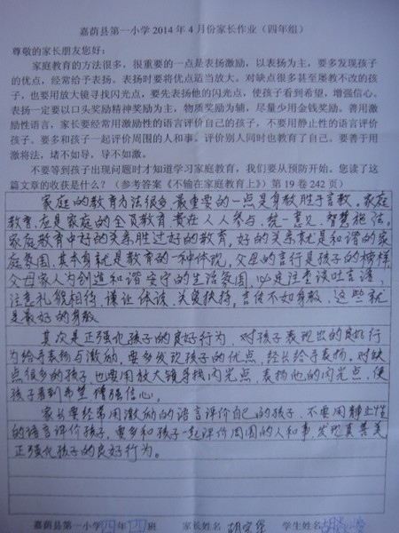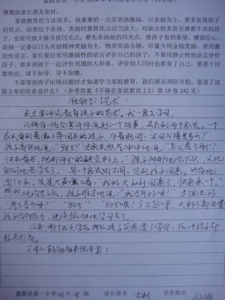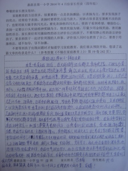 四月份优秀家长作业