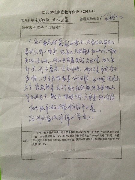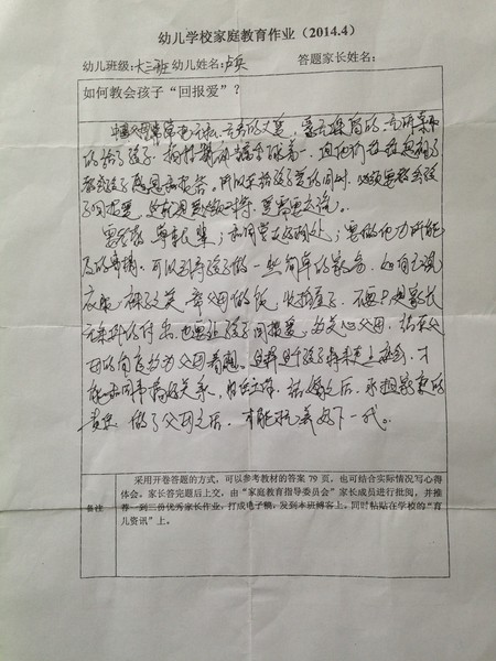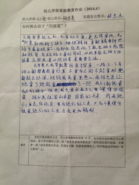 2014年4月份优秀家长作业