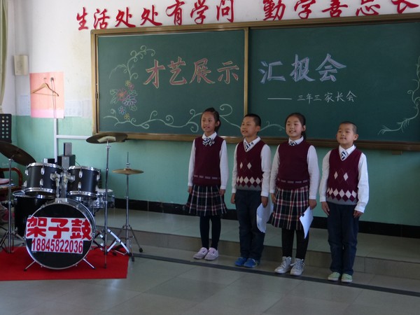 今天下午三年三班格外热闹,教师不时传来阵阵掌声和欢乐的笑声。在扈老师的精心指导和准备下召开了面向家长的“才艺展示汇报会”。孩子们表演的三句半、歌曲演唱、乐器表演、诗朗诵等等让在座的家长感受到了素质教育在孩子的学习成长中是多么重要。看着孩子张张笑脸,家长们脸上露出了欣慰的笑容。