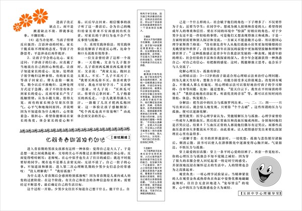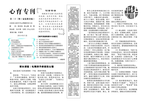 第33期,2000多份的《心育专刊》,通过各班主任,分发到每个家长的手上,愿每一次的传播和渗透,能唤醒家长对家庭教育的重新认识,以及家庭教育方法上的改进和提高。温暖孩子,幸福千万家!