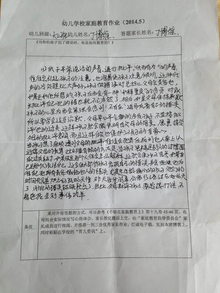 2014年5月份优秀家长作业