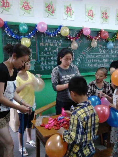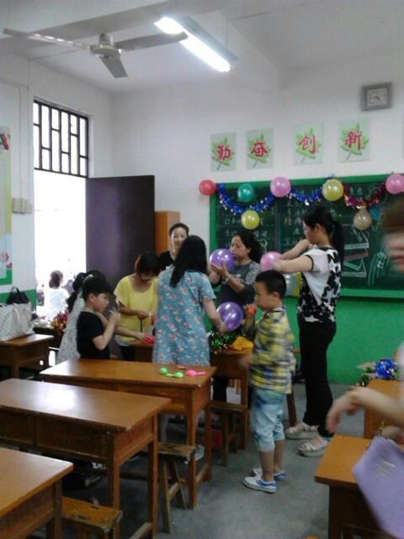 今天我们几个家长就相约来班级帮老师布置教室。我们准备了彩带、气球还有其他工具,大家在接完孩子后就来到教室忙起来了。我们先商量好如何布置,然后就开始忙乎起来。有的打气球,有的挂彩带,有的递东西,有的在调试明天活动的音乐,我就忙着拍照,记录这快乐温馨的时刻。孩子们看到我们忙着挂气球挂彩带,也帮我们递工具,大家在一片欢声笑语中把教室的黑板、窗户、门口都装饰上了美丽的彩带和五彩的气球,教室里充满了节日的气氛,最后孩子们主动收拾了教室里的纸屑。