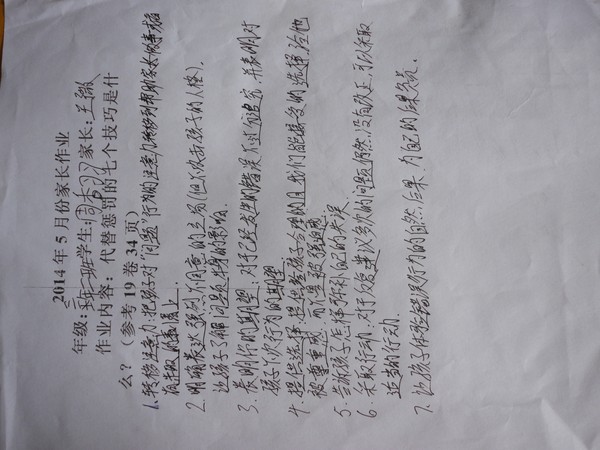 2014年5月份优秀家长作业