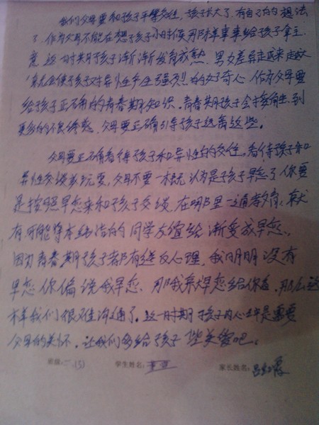 三月份家长作业 二年三班
