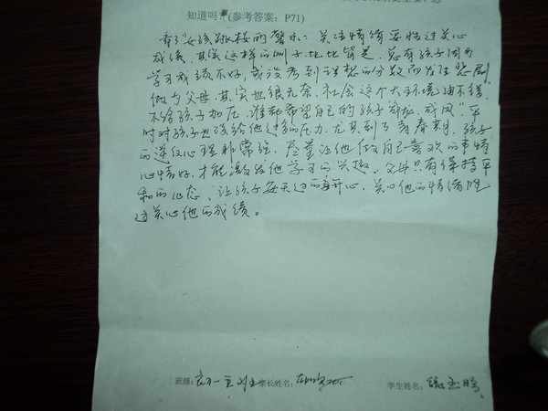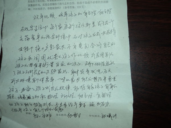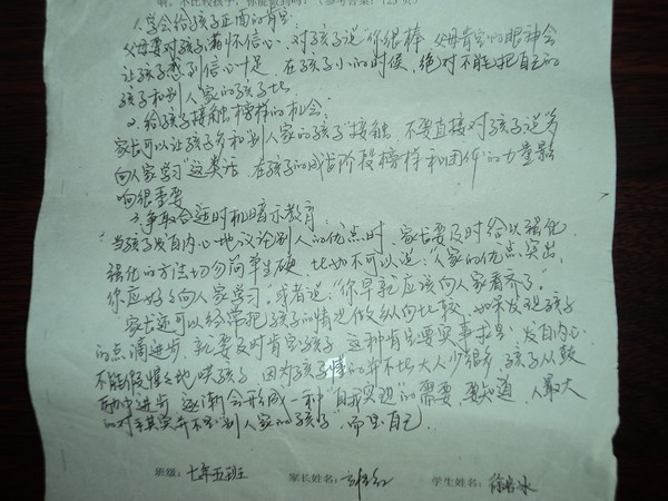 初一五班七月份家长作业