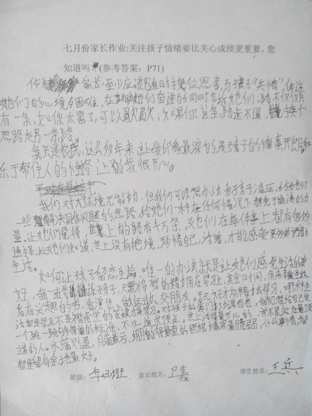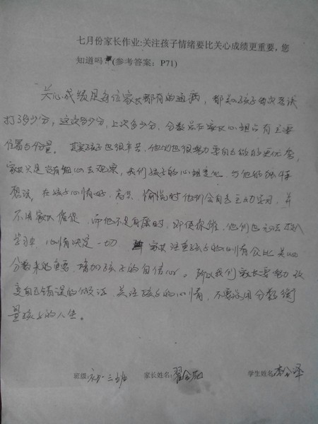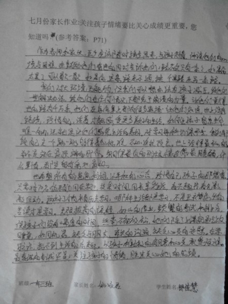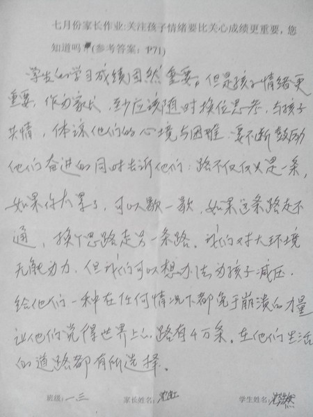 嘉荫二中一年三班7月家长作业
