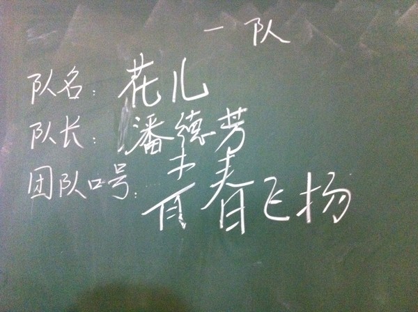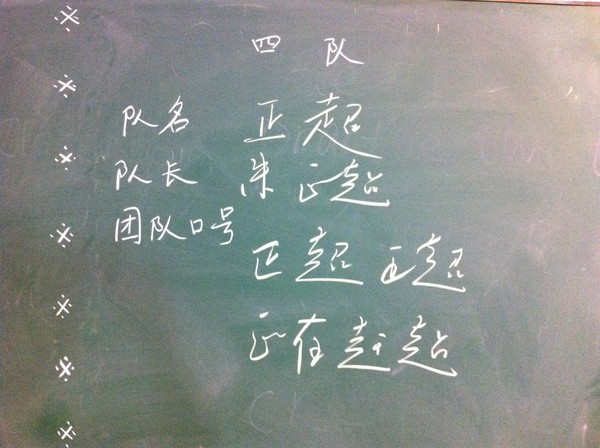 四个学习小组分别给自己团队的命名和团队口号,这就是投入地学习焕发出来的神采!