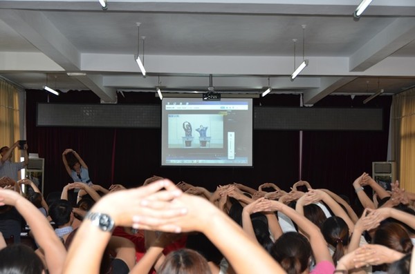 参加学习的老师们和吴明老师一起快乐地开展课间活动,既活跃气氛,又愉悦身心。