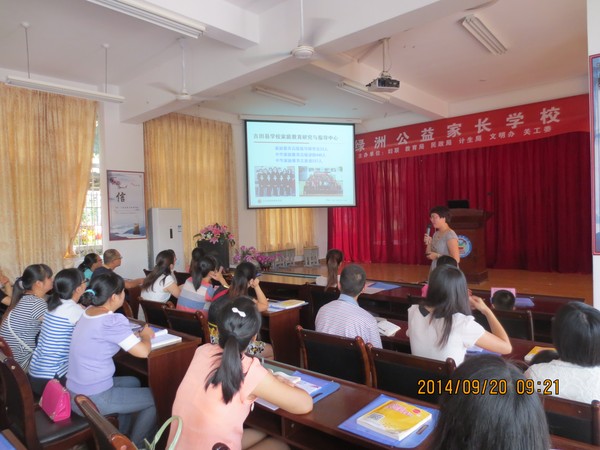 为满足广大家长对现代家庭教育科学知识的迫切需求,帮助家长树立正确的家庭教育理念,掌握科学的家庭教育方法,营造和谐幸福的家庭育人环境,2014年9月20日上午九点,古田县绿洲公益家长学校正式成立,并在实验小学综合楼多媒体教室开班,来自城区各幼儿园中小学的第一批家长七十多人参加了开班学习。绿洲公益家长学校第一期学习时间从2014年9月20至2015年1月31日,每周六上午9:00—10:30。每节课均由讲座与读书交流或专题沙龙两部分组成。授课老师为来自县内各幼儿园中小学校的老师,他们持有家庭教育指导师证,周末兼职做家庭教育志愿者。绿洲公益家长学校由古田县妇联、教育局、民政局 、计生局、文明办、关工委等单位主办,由古田县学校家庭教育研究与指导中心、绿洲家庭教育志愿者团承办。