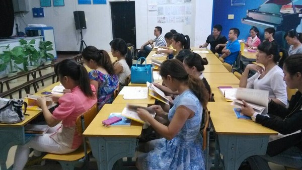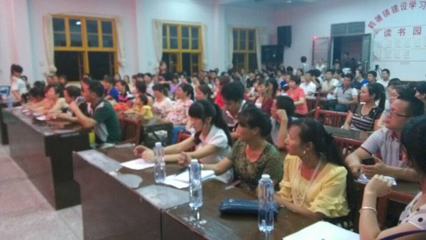 九月二十四日下午四点半,在古田县鹤塘镇中心小学多媒体教室,古田家庭教育志愿者团团长吴明为该校班主任上《表扬是甜点,批评也要可口》《“水牛”“斗牛”是怎样炼成的》两节家长读书交流示范课,中心小学二十四个班级的班主任全部到场学习。古田县各乡镇政府现在对家庭教育越来越重视,本学期家长学校教材《不输在家庭教育上》由各乡镇政府承购,采用“漂流”形式在各年级家长中轮阅。年级发放家长学校教材以后,班主任和家庭教育讲师需要开读书交流会,他们工作热情很高,但经验与实践不足,今天的讲座就是为他们“过河”“搭桥”,让班主任和讲师用好家长学校教材,让“绿色读书 爱心漂流”活动进一步开展,为家长学校在鹤塘落地生根打好基础。