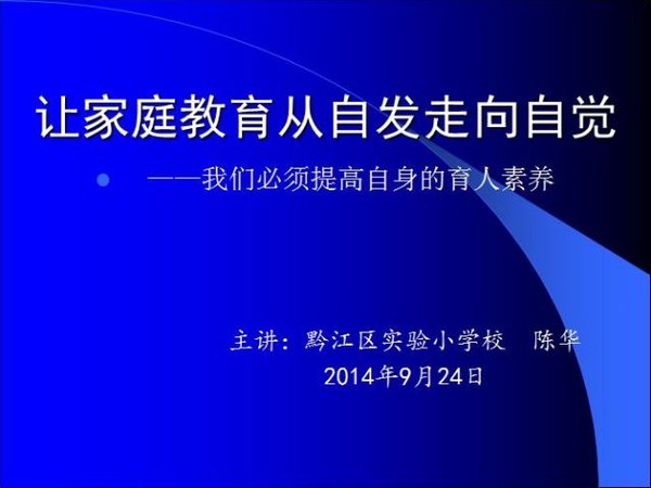 讲座由庞庆红副校长主持,黄义武校长代表实验小学致辞,由黔江区实验小学办公室主任、区家庭教育指导中心首批兼职讲师陈华主讲。讲座题为“让家庭教育从自发走向自觉——我们必须提高自身的育人素养”。陈华老师通过许多典型的事例,站在家庭教育的角度进行剖析,指出我们的家庭教育必须从自发走向自觉,要早日走出家庭教育是“无师自通”、不用学习的误区,要尽快摒弃目前广泛存在的随意的、想当然的、完全凭着感觉走的自发式家庭教育,要努力学习系统的、专业的、科学的家庭教育知识和技能,快速提高我们的育人素养。他还指出只靠学校教育是无法承担全部教育责任的,随着社会的发展,家庭教育越显重要。最后,陈华老师还简要介绍了班级家长指导委员会的运行模式和工作方法。