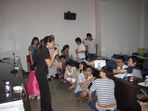 考虑到工作人员虽然整体年龄上比较年轻,但平时面对的都是社区的矫正人员,由于工作的需要,平时必须以严谨、严肃的态度进行工作,有时不免压抑自己,因而在课程开始部分,陈小莉老师精心设计了心理小游戏,希望通过躯体的运动带动大家敞开胸怀,为下面的绘画做好铺垫。但游戏过程中,大家还是比较羞涩,没有很好的放开手脚,尽管如此,大家脸上还是挂满了笑容,学员分享时说,感觉很开心,很有趣,整体氛围还是很好。