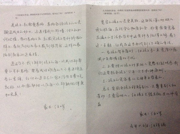 2014年9,10月家长作业