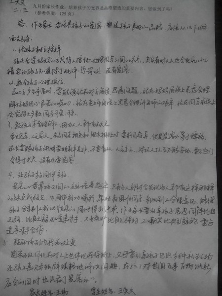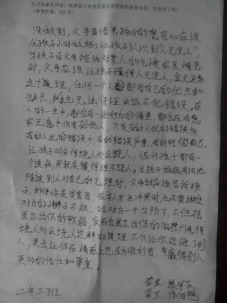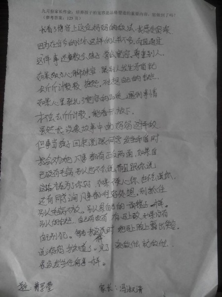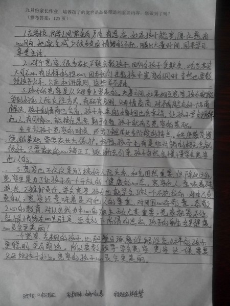 嘉荫二中二年三9月优秀家长作业